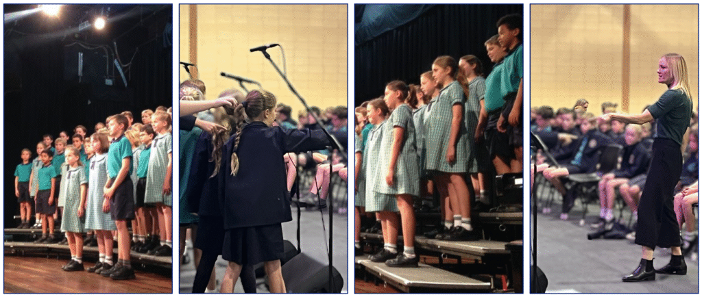 The Stage 3 Choir is an elective ensemble for Years 5 and 6, offering a more challenging repertoire that includes both contemporary and traditional pieces. The repertoire is shaped by student interests and specific occasions like Christmas, Easter and local eisteddfods. Eisteddfod preparation begins in Term 2, with the choir having a strong track record at the Lismore Eisteddfod, including winning all categories in 2016. Students must enroll for the Stage 3 Choir, with rehearsals held every Tuesday morning from 8:15 am to 8:45 am.